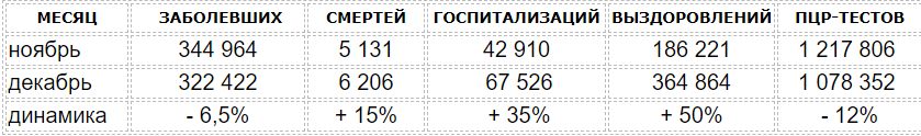 С другой стороны - реальная ситуация с эпидемией. Которая, как видно по статистике декабря (в сравнении с ноябрем) не улучшается, а совсем наоборот.