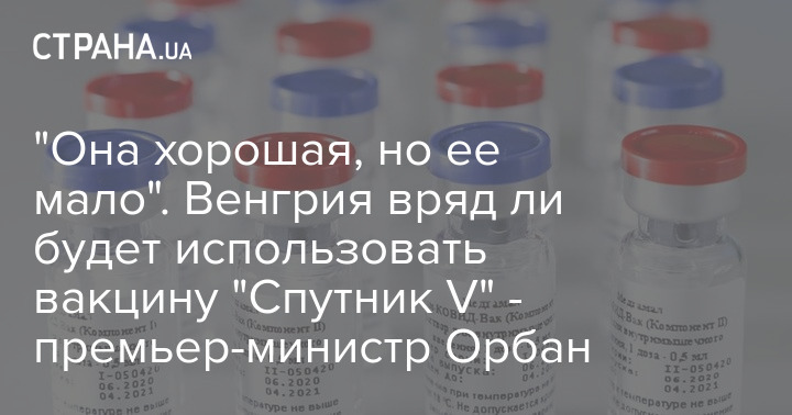 "Мы знаем, что российская вакцина хорошая, но ее недостаточно и, вероятно, не будет достаточно, поскольку существуют ограничения производственных мощностей", - сказал Орбан.