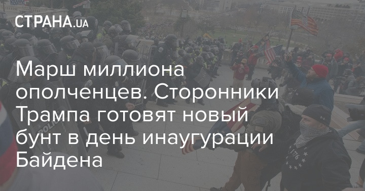 В США готовят новый бунт - сторонники Дональда Трампа собираются на "Марш миллиона ополченцев" (Million Militia March) в день инаугурации Джо Байдена 20 января возле того же Капитолия.