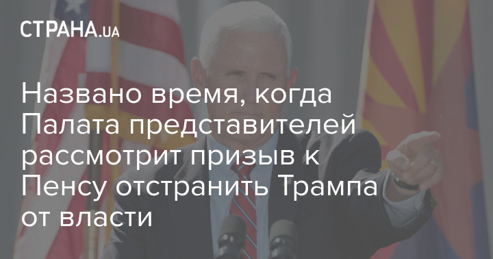 Палата представителей Конгресса США во вторник вечером по местному времени (в ночь на среду по Киеву) рассмотрит резолюцию с призывом конгрессменов к вице-президенту Майку Пенсу. Пенса побуждают воспользоваться 25-й поправкой к Конституции США и отстранить от власти Дональда Трампа.