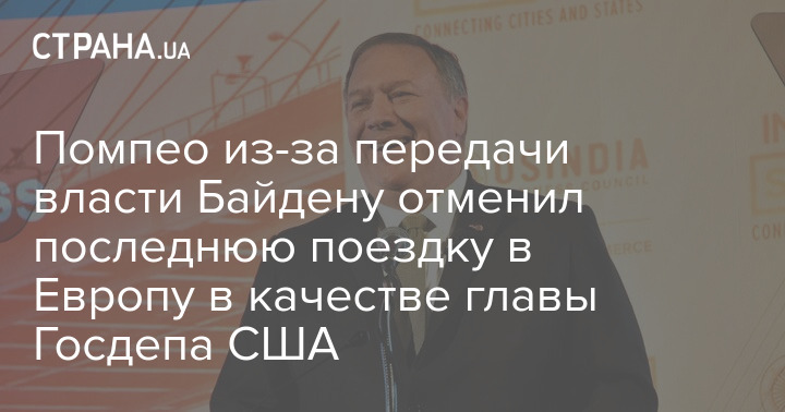В среду, 13 января, государственный секретарь США Майк Помпео отказался от поездки в Европу из-за процесса передачи власти команде Джо Байдена, инаугурация которого состоится 20 января.
