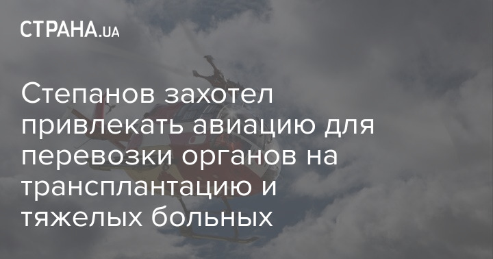 Уже в этом году в Украине будет создан проект единого аэромедицинского пространства, согласно которому к медицинской помощи будет привлечена авиация. В первую очередь авиа-перевозки буду использовать для перевозки органов для трансплантации и транспортировки тяжелых больных.