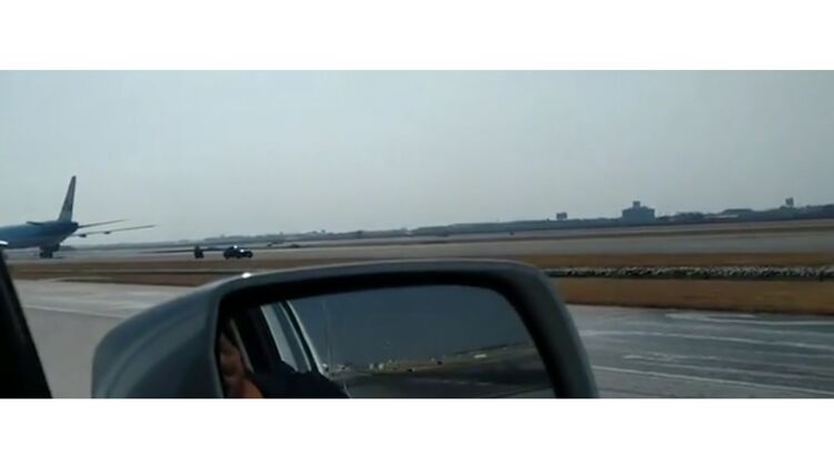 На кадрах видно, как машина движется возле самолета, который недавно приземлился. Также запечатлено, как авто вывозят со взлетно-посадочной полосы.