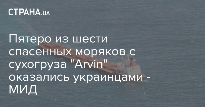 "С судна Arvin, которое шло под флагом Палау, спасены 5 украинцев и 1 иностранец. Они госпитализированы. Их состояние удовлетворительное. Родственники проинформированы. Поиски - уточнение - 5 моряков продолжаются", - написал Николенко.