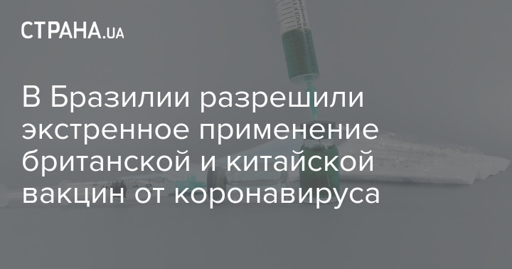 В Бразилии медицинский регулятор Anvisa выдал разрешение на экстренное применение двух вакцин от коронавируса: производства британской компании AstraZeneca и китайской компании Sinovac. Соглашение о поставках второго препарата в Украину ранее уже заключил Киев