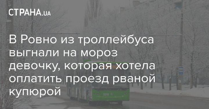 В Ровно кондуктор троллейбуса №9 выгнала 13-летнюю девочку из салона общественного транспорта на двадцатиградусный мороз. Кондуктору не понравилось, что подросток хотела рассчитаться за проезд надорванной купюрой.