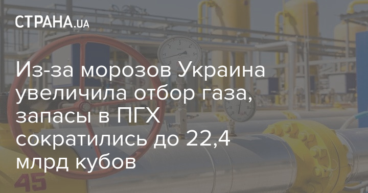 По состоянию на 17 января объем газа в подземных хранилищах Украины (ПГХ) уменьшился до 22,401 млрд кубических метров, а суточный отбор из ПХГ на фоне морозной погоды в нашей стране превысил 100 млн куб. м.