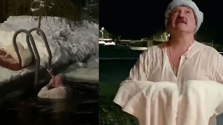 Лукашенко в длинной рубашке окунулся в прорубь. Видео