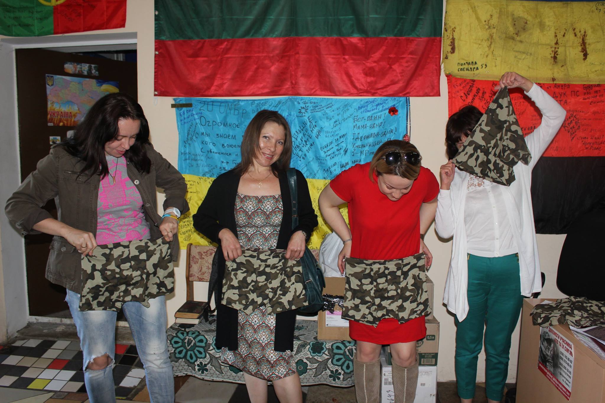 На странице Виктории Ждановой есть фото, где собирают помощь военным на фоне флагов из АТО.