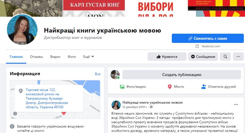 Также, судя по всему, Виктория Жданова продает книги на книжном рынке в Днепре.