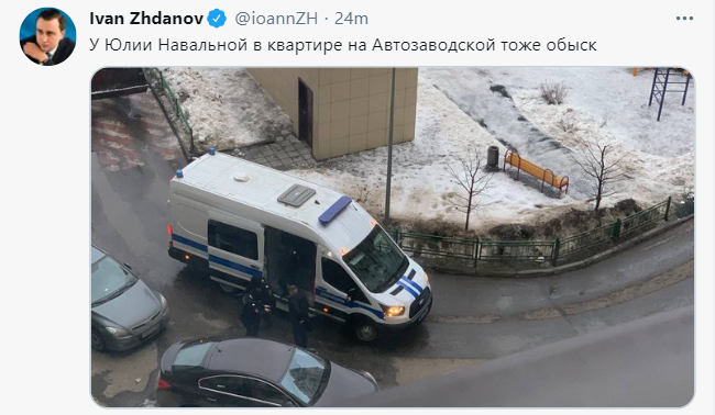Силовики приехали с обыском к супруге Алексея Навального. Фото: twitter.com/ioannZH