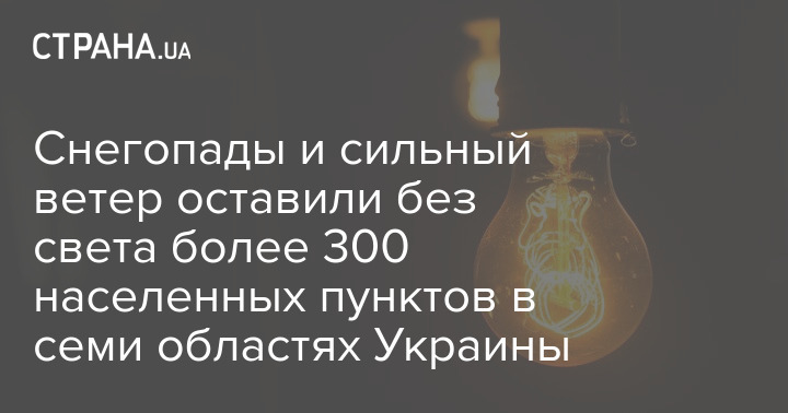 Снегопады и сильный ветер оставили без света более 300 населенных пунктов в семи областях Украины