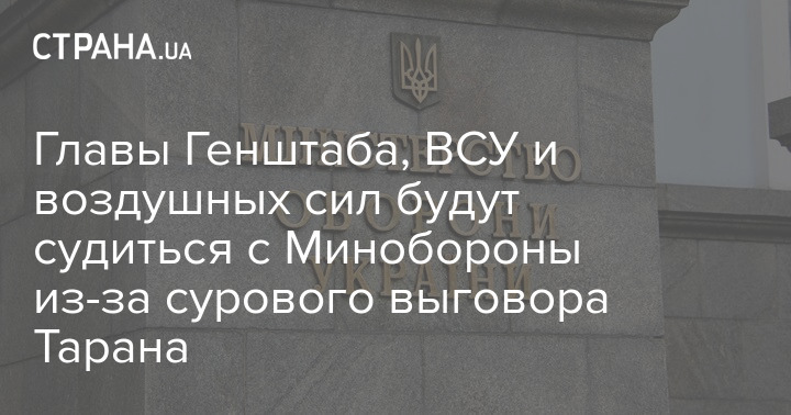Главы Генштаба, ВСУ и воздушных сил будут судиться с Минобороны из-за сурового выговора Тарана