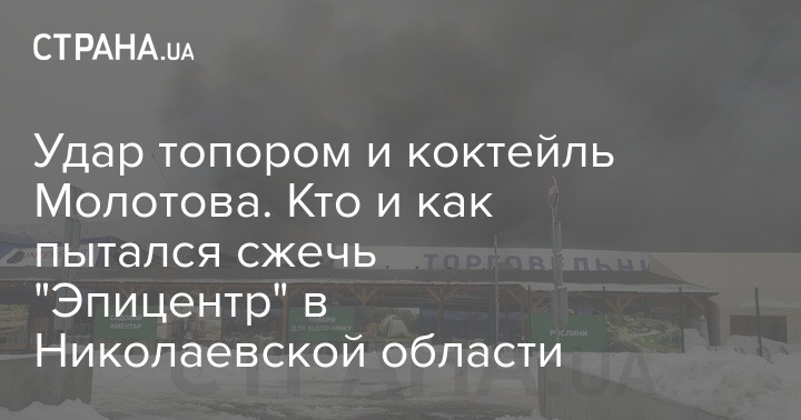 Во вторник, 2 февраля, в городе Первомайск Николаевской области произошел пожар в "Эпицентре". Администрация говорит о двух поджигателях. Один из мужчин облил неизвестным веществом стенды с ковровым покрытием и линолеумом и поджег их, а потом ударил топором охранника.
