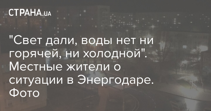 "В 19:30 по всему региону не было ни света ни воды. Минут 15 назад начали подключать свет частями, по микрорайонам. А воды до сих пор нет ни горячей, ни холодной", - сообщил "Стране" житель Энергодара.