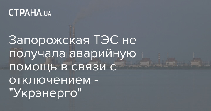 Запорожская ТЭС не получала аварийную помощь в связи с отключением - "Укрэнерго"