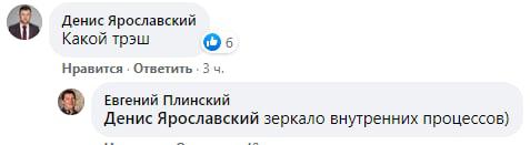 "Какой трэш", - высказался кандидат в мэры Харькова Денис Ярославский. "Зеркало внутренних процессов", - ответил журналист Евгений Плинский.