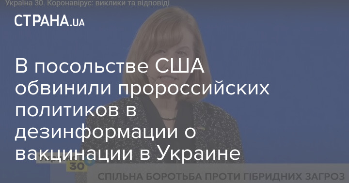 В посольстве США считают, что украинцы не доверяют вакцинации, в том числе из-за пророссийских политиков и распространяемой ими дезинформации.