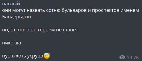 "Они могут назвать сотню бульваров и проспектов именем Бандеры, но от этого он героем не станет. Никогда".