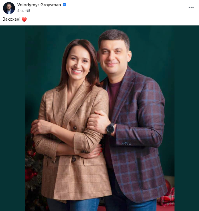 Экс-премьер Владимир Гройсман выложил фото с женой Еленой. "Влюбленные", - кратко описал он сюжет снимка.