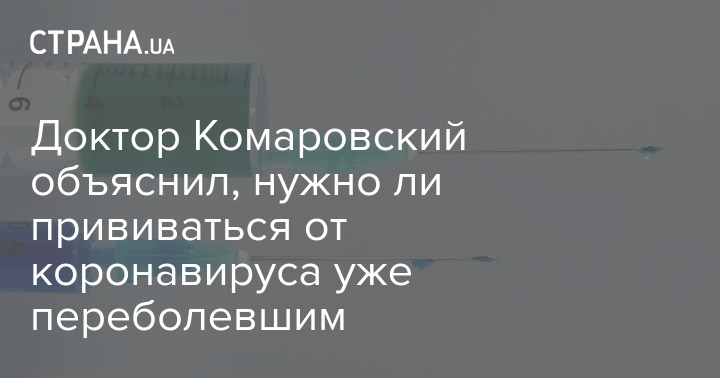 Доктор Комаровский объяснил, нужно ли прививаться от коронавируса уже переболевшим