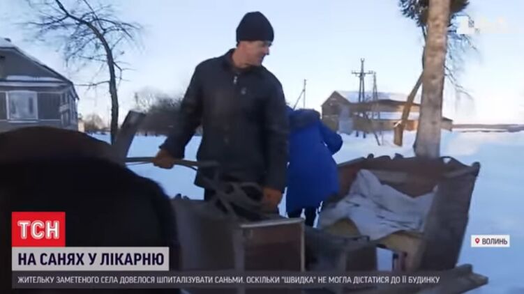 На Волыни медики не смогли добраться к больной жительнице села Менчичи. От дома до кареты скорой помощи женщину транспортировали дедовским методом - на санях, которые тянула пара лошадей.