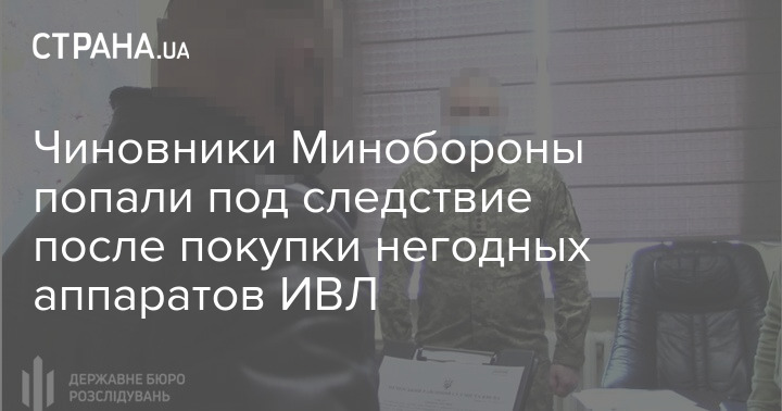 "Оперативные сотрудники ГБР получили информацию о том, что в мае 2020 года в Министерстве обороны Украины в лице Командования Медицинских сил Вооруженных сил Украины была осуществлена закупка аппаратов искусственной вентиляции легких на общую сумму 11 млн грн. Однако их комплектация и технические характеристики не соответствуют медико-техническим требованиям тендерной документации, что делает невозможным использование закупленных медицинских изделий по прямому назначению", - говорится в сообщении.