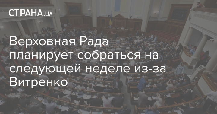 Верховная Рада планирует собраться на следующей неделе из-за Витренко