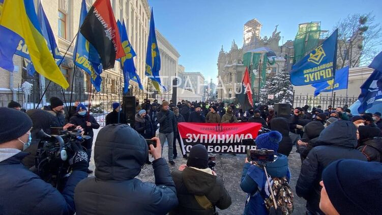 Перед заседанием СНБО националисты под ОП требуют закрыть "Страну", "Вести" и "Наш". Фото и видео