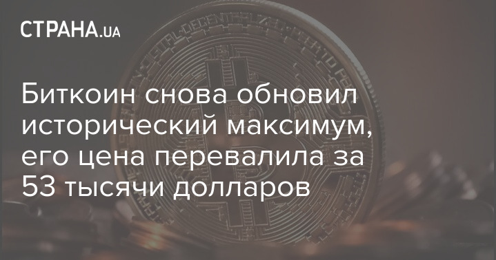 Биткоин снова обновил исторический максимум, его цена перевалила за 53 тысячи долларов