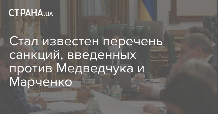Против восьми физических лиц, в числе которых народный депутат "Оппоплатормы" Виктор Медведчук и его супруга Оксана Марченко введены одинаковые санкции. Действие ограничений продлится три года, запрета занимать выборные должности среди них нет.