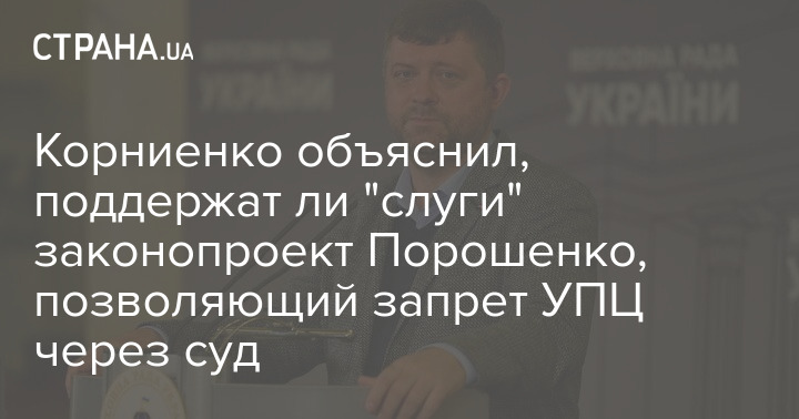 Глава партии "Слуга народа" Александр Корниенко рассказал "Стране" будет ли партия президента голосовать за законопроект лидера "Евросолидарности" Петра Порошенко (под которым подписались и "слуги") о возможности запрета религиозных организаций через суд.