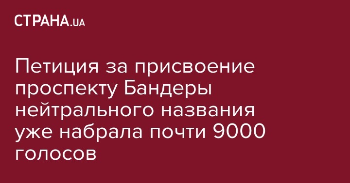 Петиция с требованием дать проспекту Степана Бандеры нейтральное название, входит в список самых популярных на сайте Киевсовета. Она уже набрала 8590 голосов, до необходимых десяти тысяч не хватает 1410 подписей. До закрытия голосования остается еще 22 дня.