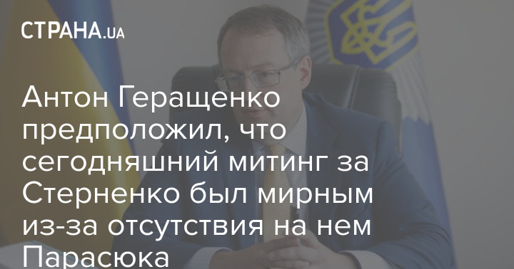 Антон Геращенко предположил, что сегодняшний митинг за Стерненко был мирным из-за отсутствия на нем Парасюка