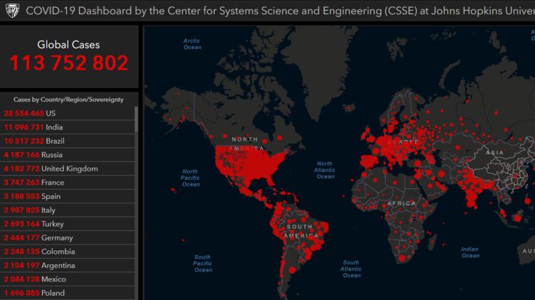 По данным на 28 февраля, число зараженных на Земле приближается к 114 миллионам, фото: arcgis.com