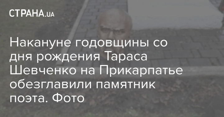 Накануне годовщины со дня рождения Тараса Шевченко на Прикарпатье обезглавили памятник поэта. Фото