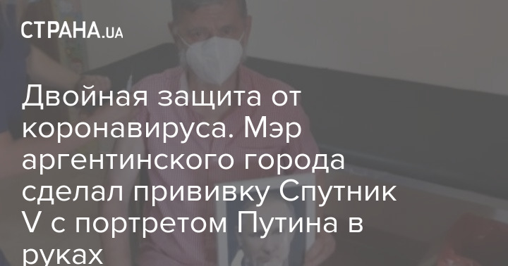 Двойная защита от коронавируса. Мэр аргентинского города сделал прививку Спутник V с портретом Путина в руках