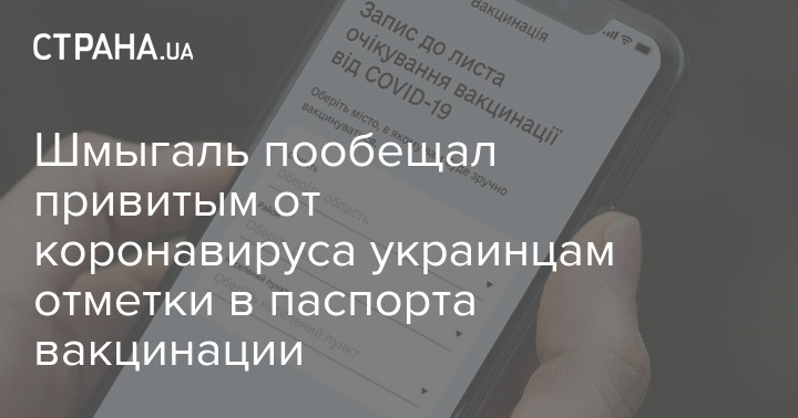 Шмыгаль пообещал привитым от коронавируса украинцам отметки в паспорта вакцинации