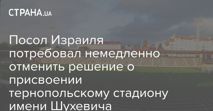 Посол Израиля потребовал немедленно отменить решение о присвоении тернопольскому стадиону имени Шухевича