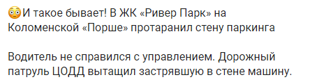 Позже стало известно, что во время происшествия никто не пострадал. Машину, застрявшую в стене, вытащили специалисты Центра организации дорожного движения.