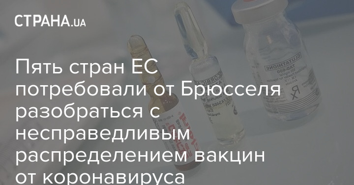 В Европейском союзе пять стран призвали провести саммит, чтобы обсудить диспропорцию в распределении вакцин от коронавируса между государствами.