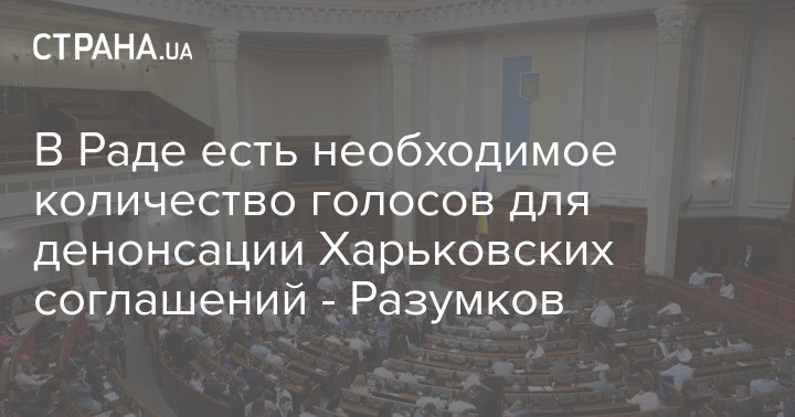 Глава Верховной Рады Дмитрий Разумков считает, что в парламенте есть необходимое количество голосов для принятия законопроекта "О денонсации Соглашения между Украиной и Российской Федерацией по вопросам пребывания Черноморского флота Российской Федерации на территории Украины".