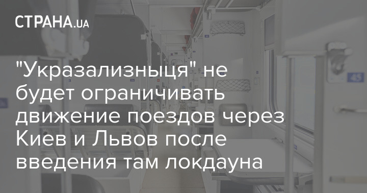 "Укрзализныця" не будет ограничивать движение поездов через Киев и Львов, в которых решениями местных властей введен локдаун, потому что оба города все еще находятся в "оранжевой зоне".