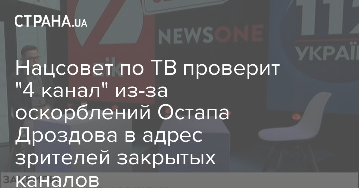 Нацсовет Украины по вопросам телевидения и радиовещания по обращению нардепа Максима Бужанского назначил внеплановую проверку "4 канала", в эфире которого телеведущий Остап Дроздов оскорбил зрителей закрытых властями оппозиционных телеканалов "112", NewsOne и Zik.