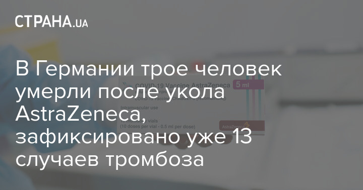 В Германии, которая приостановила вакцинацию от коронавируса препаратом AstraZeneca, у тринадцати уже привитых человек зафиксировали случаи тромбоза сосудов головного мозга, трое из них умерли.