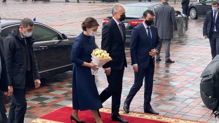 Спикер ВР Дмитрий Разумков встретил президента Литовской Республики Гитанаса Науседы у входа в парламент.