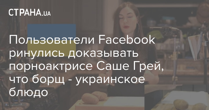 Украинские пользователи соцсети Facebook забомбили бывшую порноактрису, а ныне блогершу и писательницу Сашу Грей комментариями о том, что борщ - это украинское блюдо. Поводом стал анонс видео Саши о приготовлении борща.