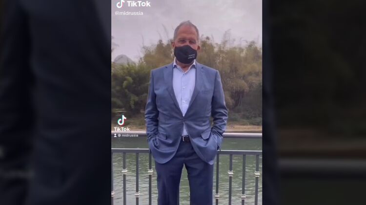 Ролик, в котором Лавров стоит на фоне водоема в деловом костюме и черной защитной маске, появился в TikTok 22 марта. Его успели посмотреть более тысячи раз, однако потом видео удалили.