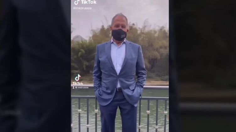 Лавров в Китае снялся для TikTok в маске с надписью "fckng qrntn"
