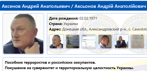 На момент драматических событий 2014 года Андрей Аксенов был главой поселка Новодонецкое. В нем тогда открыли уличную палатку - импровизированный участок, на котором проходил "референдум" об отделении от Украины и создании "ДНР".